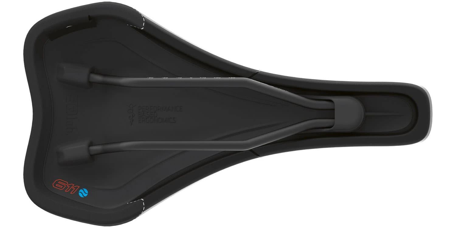 De 611 Ergowave is precies aangepast aan de behoeften van off-road rijden en geperfectioneerd om aan de eisen van All-Mountain en Enduro te voldoen. De golfachtige vorm van het zadel en de verhoogde achterkant zorgen voor een perfecte ondersteuning van de achterkant en een optimale drukverdeling tot in de diepe structuren van het lichaam, waardoor de krachtoverdracht op het pedaal aanzienlijk wordt verbeterd. De lagere neus, in combinatie met de uitsparing in het midden, creëert meer ruimte en speling voor het perineumgebied. Voor een nog betere drukontlasting, vooral op langere beklimmingen, is de neus van het 611 zadel 4 mm breder dan die van het 612 zadel, maar net zo vlak en met een zo groot mogelijk contactoppervlak. Het opvulmateriaal is speciaal aangepast aan de eisen van MTB en heeft, in vergelijking met de 612 Ergowave modellen, meer demping in ruw terrein. De hoogwaardige Kevlar-bekleding beschermt de bijzonder belaste delen van het zadel.
